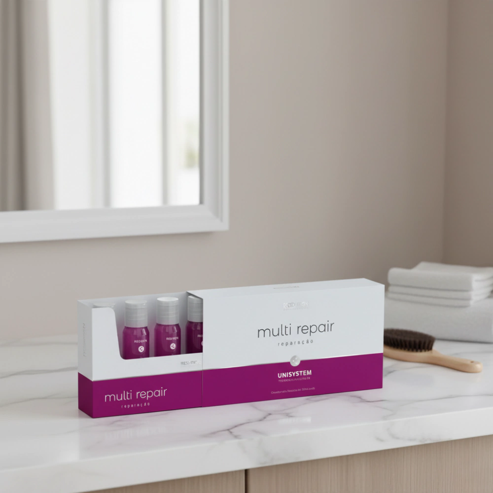 A Ampola Multi Repair oferece alto poder de reparação para cabelos danificados por processos químicos. Sua fórmula rica em ativos reparadores repõe os lipídios essenciais, proporcionando proteção, restauração, força e brilho intenso. Ideal para recuperar a saúde dos fios antes ou depois de químicas, deixando-os mais resistentes e luminosos.